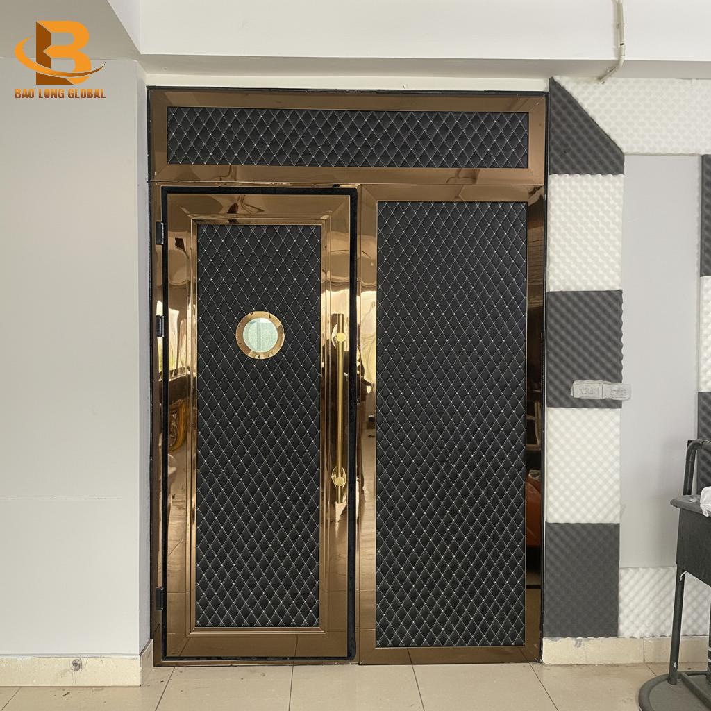 Môi trường phòng karaoke thường có độ ẩm và tần suất sử dụng cao. Vì vậy, vật liệu chế tạo cần phải bền bỉ, chống chịu va đập tốt. Về mặt thẩm mỹ, cửa phải hòa hợp với phong cách thiết kế chung của phòng, từ cổ điển, tân cổ điển đến hiện đại. Bảo Long Global luôn tập trung vào các vật liệu cao cấp như gỗ công nghiệp chống ẩm, da bọc, hoặc inox trang trí để đảm bảo cửa vừa đẹp, vừa chịu được điều kiện vận hành khắc nghiệt.